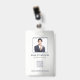 Modern photo business ID identification card with bar code over the gradient grey background. Additional information can be added to the backside of this business ID badge