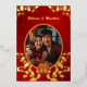 This elegant Chinese wedding invitation features a round photo surrounded by real gold foil cherry blossom branches and a real gold foil round gold double happiness symbol on a shimmering floral red background. Bride and groom names in an elegant classic script. Chinese wedding invitation or tea ceremony invitation.