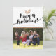 Celebrate the festive season with this elegant black, white & copper christmas cards featuring a family photo to be replaced with your own, the words "happy holidays", two copper pine cones, your name and the year. The reverse is a classic black and white tartan pattern print.
