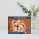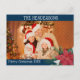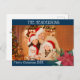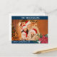 Poinsettia family photos Christmas holiday postcard with year and stylish navy blue and white floral clip art.