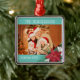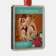 Photo Christmas Poinsettia ornament with year and stylish teal and white floral clip art.