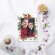 This elegant Christmas photo card features a beautiful frame of hand-painted watercolor greenery, flowers, and berries with a real gold frame and an elegant script. The back includes the same artwork with a second photo and text for personalising your message. Find matching items in the Christmas Holiday Poinsettia Collection.