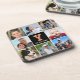Photo Collage Family Monogrammed Orange Black Coaster