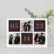 Announce your upcoming nuptials with these chic save the date cards featuring three of your favourite square photos and your wedding date in a gridded layout with alternating burgundy plum squares. "Save the Date" appears beneath along with your names and wedding location.