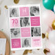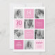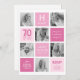 Contemporary 70th birthday party invitations featuring a modern photo collage, cute pink squares, and a stylish text template for you to personalise with your own celebration information.