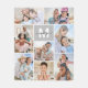 The centerpiece is a personalised monogram in black, white, and grey, surrounded by an 8-photo collage showcasing special family moments. This layout makes the magnet a unique and loving tribute full of memories.