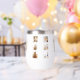 A white background. Personalise and add a 7 photo collage, monogram initials and full name. Black text.
