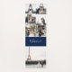 Stand out with this personal beach towel that shows off 7 photos from your wedding or your family. It has a navy block where you can put your last or first name. On the back, there are classic stripes in navy.