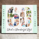 Create your own unique 60th Birthday Gift. This smart canvas is a great way to display your photo collage. The template is set up ready for you to add your favourite photos, which will automatically appear in the shape of the number 60. You can also add your name and birth year (or last name) in bold print. The sample wording "What a Wonderful Life", is also fully editable and lettered in dark grey script typography. The design is complete with mint green borders. Please browse our store for coordinating 60th birthday gifts and cards.