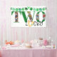 Two Lucky 2nd birthday party banner with custom photo collage and option to add a name or event. The photo template is set up ready for you to add 9 of your favourite photos, which form part of the word TWO. Lucky is printed in quirky hand lettering with a lucky horseshoe. The shamrock bunting can be personalised with a name or event, or you can delete the letters if you wish.