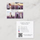 Back: Templates for your name, title, phone number, mail and website address, QR-code to your website. Facebook and Instagram icons.