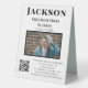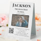 Celebrate this special milestone with a funny and playful table tent sign designed for our graduation party! The sign features an eye-catching photo of the graduate with a prominently displayed QR code, inviting guests to scan and instantly access a dedicated webpage.
