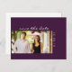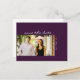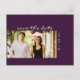 The clean lines of this modern design accentuate your beautiful photo. Add your picture and customise the postcard as you wish. Customised colours upon request. Shown in eggplant purple with white text.
