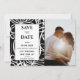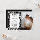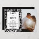A stylish black and white wedding Save the Date featuring your custom photo and elegant text.