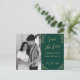 Announce your wedding date in style with our elegant save the date postcard. With its Art Deco design in gold and calligraphy on a green background, this card immediately grabs attention and adds a touch of sophistication to your announcement. Customise it with a photo of you and your significant other for an extra personal touch. Order now to set the tone for your dream wedding.