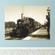 A sepia photograph of an historic steam locomotive as it chugs out of the past; a beautiful gift for any train aficionado.