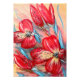 The painting depicts vibrant red flowers set against an abstract, light-coloured background. The flowers, with their bold red petals, stand out prominently, adding a sense of warmth and intensity to the artwork. The background is a soft blend of light hues, perhaps beige, cream, or pastel tones, creating a calming and serene atmosphere. The abstract nature of the background contrasts with the detailed flowers, making them the focal point of the painting
