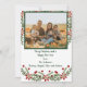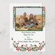 Add your photo and your Christmas or Holiday saying to this Christmas/Holiday card. Red and Green Holiday flowers surround the design.
