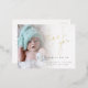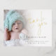 Photo Overlay Foil Script Thank You BIrth Announcement. Announce the news of your new arrival and say thank you at the same time for gifts and cards already received with this gender neutral design with real foil for Thank You which is in a stylish set script in your choice of gold, silver or rose gold. Simply replace the sample photo with your own favourite of your new baby girl or boy and easily personalise the rest of the text on each side.