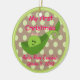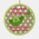 An adorable and unique Christmas ornament for your baby girl. A pea in a pod with a brown and green polka dot background will add an adorable touch to your Christmas decorations. The back of the ornament is framed and ready for your baby's photo. Personalise the text on the front for a wonderful keepsake! Makes a great holiday or baby shower gift. Original artwork by Night Owl's Menagerie, 2010.