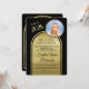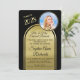 This elegant Graduation Party announcement features a double arch with black lettering against a brushed gold background and a room for a photo of the honoree of this special occasion. The announcement is from the parents. The back of the card has room for three additional photos. Much to personalise to make appropriate for your honoree. Any design questions, just send a chat or an email to charmdesignstudio@rcn.com and we'll be delighted to assist. Also contact us if you wish the background colour to be changed to a school colour or favourite colour.