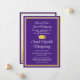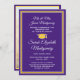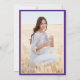 Share the joy of a high school or college graduation with custom photo purple, gold and white announcements. This formal style template includes parents' and graduate's names, as well as any wording of your choice, such as party invitation details, special honours, degree title, favourite inspirational quote, graduate's contact info, future education plans, or new job position. All text on this template is simple to personalise. The purple and yellow bordered design features a mortar board cap, elegant script calligraphy, classic traditional typography, and one photo of your choice, such as a senior picture or image from the commencement ceremony. Please note that gold is printed colour, not metallic foil. These graduation announcement cards are a stylish way to share your special day celebration with family and friends. Congratulations to the graduate!