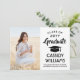 Share the joy of a high school or college graduation with these custom photo black and white announcements. (IMAGE PLACEMENT TIP: An easy way to centre a picture exactly how you want is to crop it before uploading to the Zazzle website.) This template is simple to customise with any wording of your choice, such as party invitation details, parents' names, special honours, degree title, favourite inspirational quote, graduate's contact info, future education plans, or new job position. If there's any text not wanted simply delete it. Design features a white background, black mortar board cap, handwritten style script calligraphy, modern minimalist typography, and one photo of your choice, such as a senior picture or image from the commencement ceremony. Please note that silver is printed colour, not metallic foil. These elegant graduation announcement cards are a trendy and chic way to share your special day celebration with family and friends. Congratulations to the graduate!