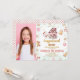 Sweet girl's gingerbread house decorating party birthday invitation featuring a cute gingerbread house and cute snowman, various candy and snowflakes. This photo gingerbread house decorating party birthday invitation also features a faux gold foil calligraphy heading.
