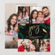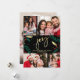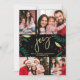 This beautiful and modern gold and black Christmas card features four of your own photos and the word "Joy" in faux gold hand lettered script calligraphy amidst red berries and Christmas greenery and your names on the front on a black background, and a fifth photo and the year on the back. Easy to customise with your own photos and text.