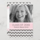 Graduation announcement custom photo card in elegant light pastel baby pink, grey and white casual and retro chevrons zigzags stripes pattern. Customise this grad photo card by adding the year of your graduation, your own photo, and your graduation details.