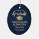 Commemorate the graduate's achievement with a custom photo navy blue and gold round graduation Christmas ornament. Picture and all text are simple to customize. Include any favorite inspirational quote, motivational saying, school name and degree, congratulations, thanks mom and dad, or other message of your choice. TO CHANGE BACKGROUND OR TEXT COLORS, SEE INSTRUCTIONS BELOW. Design features a navy blue background, gold faux foil graduation cap, personalized modern typography name, school, & class year, and one photo of your choice, such as a senior picture or image from the commencement ceremony. Please note that gold is printed color, not metallic foil. Makes a thoughtful keepsake gift idea and an elegant addition to Xmas home decor. Congratulations to the graduate!