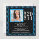 Photo Graduation Invitation Blue Black Polka Dots