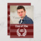 Photo Graduation Monogram Laurel Red Maroon Stripe Invitation