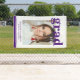 Photo Graduation Party Elegant Modern Script Banner Party Sign feature your favourite photo with the simple purple text "Grad (year)" and your name and personalised graduation details on the front. Perfect for the grad as a graduation gift or graduation party decor. Created by ©Evco Studio www.zazzle.com/store/evcostudio