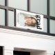 Photo Graduation Party Elegant Modern Script Banner Party Sign feature your favourite photo with the simple black text "Grad (year)" and your name and personalised graduation details on the front. Perfect for the grad as a graduation gift or graduation party decor. Created by ©Evco Studio www.zazzle.com/store/evcostudio
