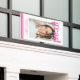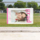 Photo Graduation Party Elegant Modern Script Banner Party Sign feature your favourite photo with the simple pink text "Grad (year)" and your name and personalised graduation details on the front. Perfect for the grad as a graduation gift or graduation party decor. Created by ©Evco Studio www.zazzle.com/store/evcostudio