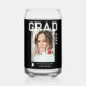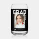 Photo Graduation Party Elegant Modern Script Personalised Can Glass Beer Glass feature your favourite photo with the simple white text "Grad (year)" and your name and personalised graduation details on a black background. Perfect for a graduation party. Created by ©Evco Studio www.zazzle.com/store/evcostudio