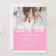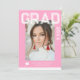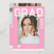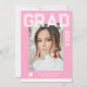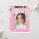 Photo Graduation Party Elegant Modern Script Invitations feature your favourite photo with the simple white text "Grad (year)" and your name and personalised graduation details on the front on a pink background. On the reverse add an additional picture with your graduation invitation information below. Personalise by editing the text in the text boxes provided. Created by ©Evco Studio www.zazzle.com/store/evcostudio
