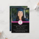 Graduation party invitation custom photo card in fuchsia hot pink, black and white modern design. Customise this grad photo card by adding the year of your graduation, your own photos, and your graduation party details.