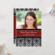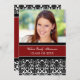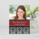 Graduation party invitation custom photo card in elegant and sophisticated red, black and white modern floral damask pattern. Customise this grad photo card by adding the year of your graduation, your own photo, and your graduation party details.
