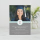 Graduation party invitation custom photo card in light pastel aqua blue, dark charcoal grey and white modern design. Customise this grad photo card by adding the year of your graduation, your own photos, and your graduation party details.