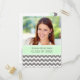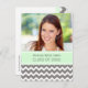 Custom year and photo graduation party invitation postcards in elegant and modern light mint green, grey and white retro and casual chevron zigzags stripes vintage pattern. Customise this grad invitation with your party details, your own photo and graduation year for a truly unique invite for your grad party.