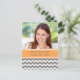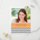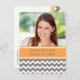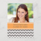 Custom year and photo graduation party invitation postcards in elegant and modern tangerine orange, grey and white retro and casual chevron zigzags stripes vintage pattern. Customise this grad invitation with your party details, your own photo and graduation year for a truly unique invite for your grad party.