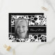 Custom year and photo graduation party invitation postcards in elegant black and white with pretty floral pattern. Customise this grad invitation with your party details, your own photo and graduation year.