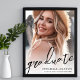 This simple and minimalist graduation party sign features a full-page photo of the graduate with "Graduate" in black handwritten script across the bottom. Below it, the graduate’s name, "Class of 2026," and the school name are displayed over a subtle white gradient that fades seamlessly into the image, ensuring the text stands out.
