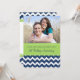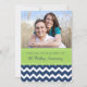 Custom photo fifth wedding anniversary party invitation card in fun and modern dark navy blue, bright lime green and white chevron zigzags pattern, elegant and contemporary. Customisable with your party details and your own photo.