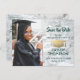 Share the joyful news of an upcoming graduation party with custom photo save the date faux marble postcard invitations. The picture and wording on this template are simple to personalise and colours can be changed with the Zazzle design tool. Customise it with graduate name, class year and other announcement details of your choice. The green, gold and white design features a faux marble background, faux foil mortar board cap, elegant modern calligraphy, classic vintage typography and one favourite photo, such as a senior picture or an image from the commencement ceremony. Please note that gold is printed ombre colour, not metallic foil. These stylish graduation cards are an elegant way to share a special day celebration with family and friends. Congratulations to the graduate!
