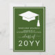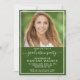 Elegant script photo graduation party invitation for the class of 2022 template school colours green with white font and a picture of the graduate, customised the background colour.