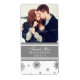 Winter Wedding custom photo template thank you labels in modern and chic dark charcoal grey and white festive snowflakes pattern, the perfect addition to your Christmas holiday or December wedding, available in many matching seasonal wedding products. Perfect for wedding favours or wine bottles.