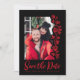 Announce your special day with style and romance using this Black and Red Photo Save the Date Card. Designed for easy online personalisation, this elegant one-sided card features your photo framed by delicate, hand-drawn red doodle roses on a black background, the perfect mix of modern simplicity and timeless charm.
